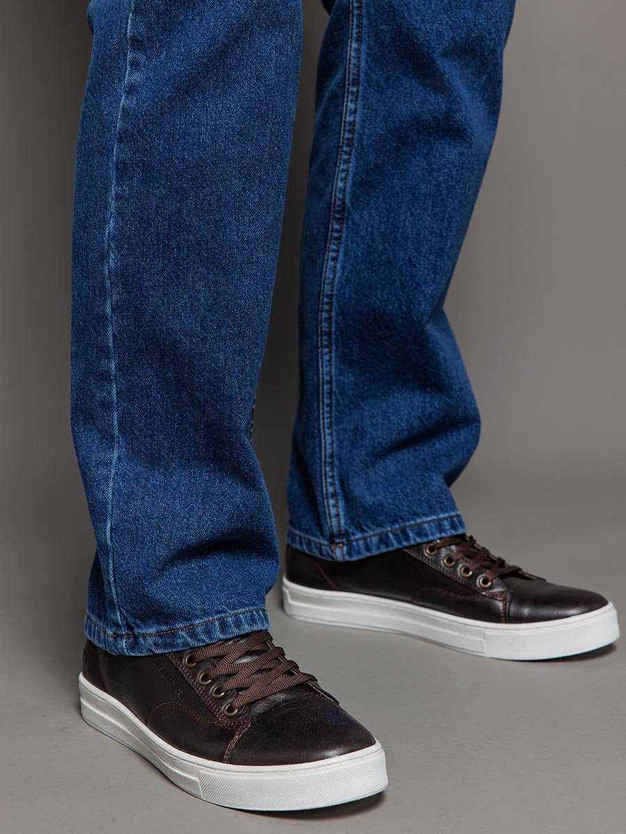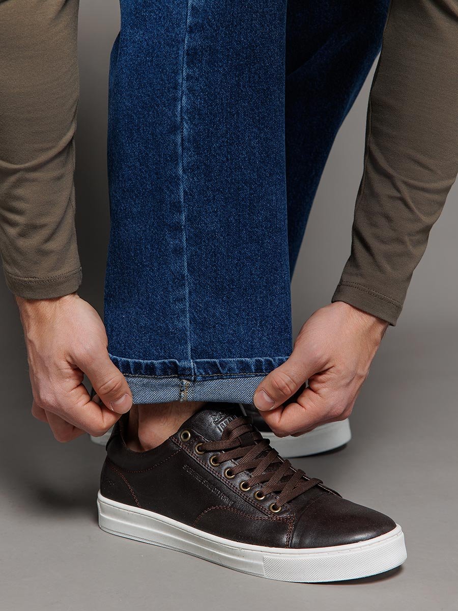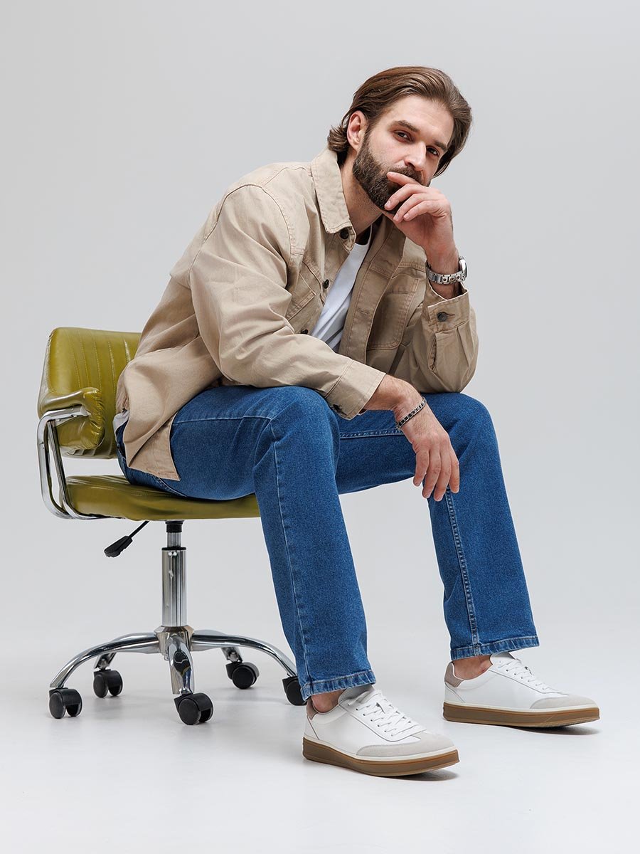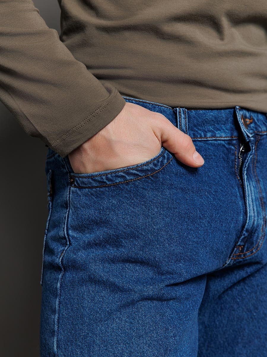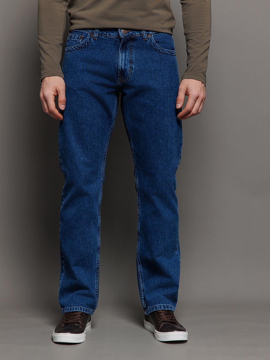 Мужские классические джинсы с пятью карманами. Посадка Regular fit (полуоблегающие по бедру), средняя высота талии. Застежка на молнии. Немного зауженные к низу. Выполнены из слабоэластичной ткани denim comfort stretch средней плотности. Классическая средняя стирка "stone wash".