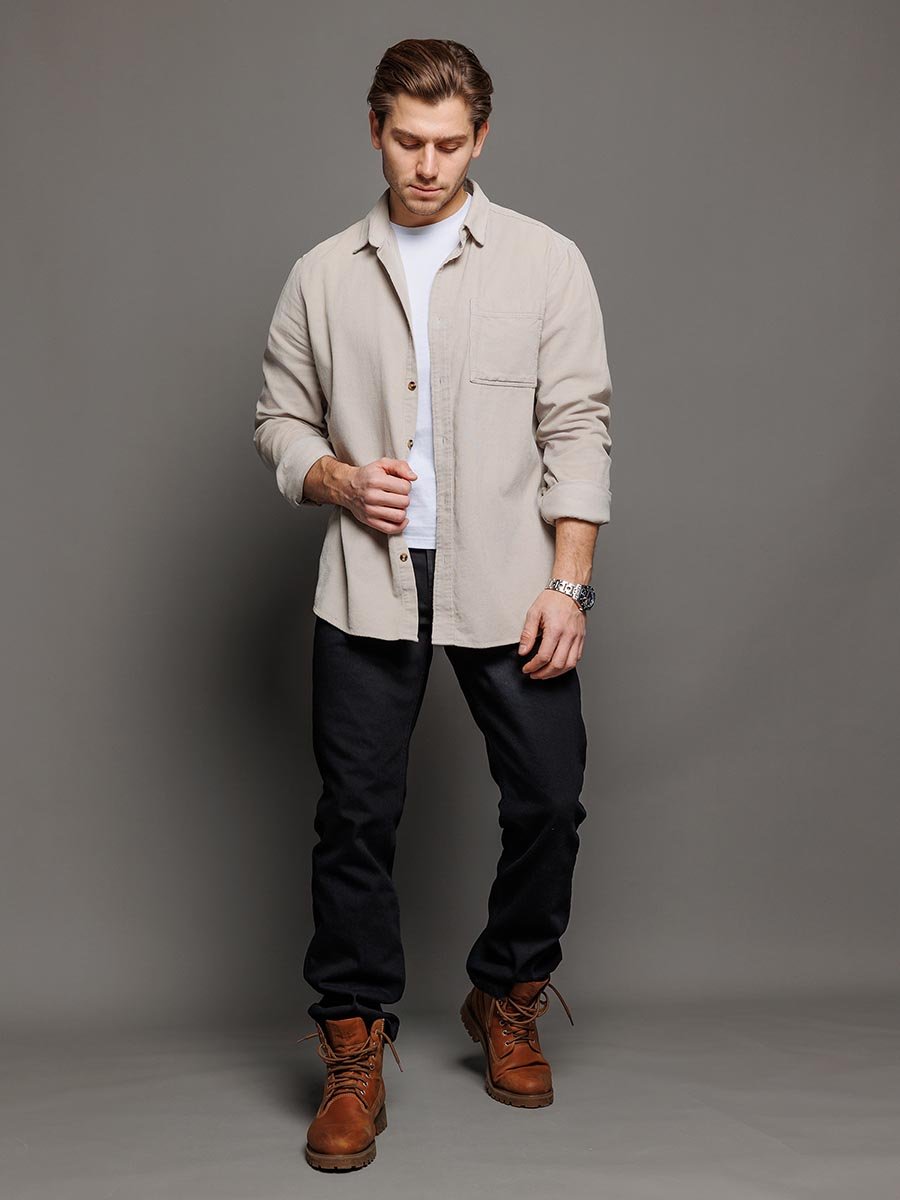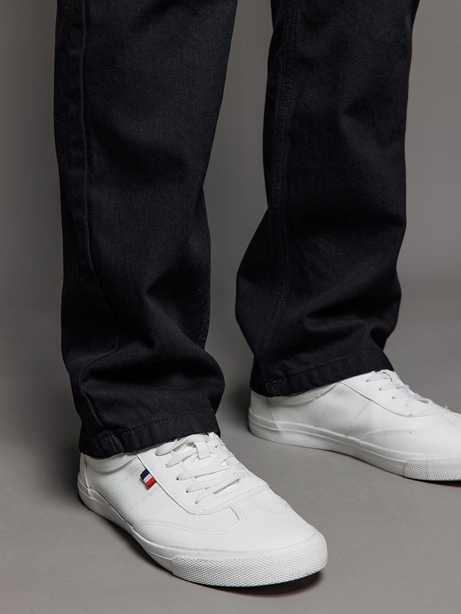 Мужские классические джинсы с пятью карманами. Посадка Regular fit (полуоблегающие по бедру), высокая талия. Застежка на молнии. Немного заужены в колене и по низу. Выполнены из традиционной хлопковой ткани denim, цвет ткани Black/Black (лицевая и изнаночная стороны ткани черные). Специальная темная стирка без потёртостей.