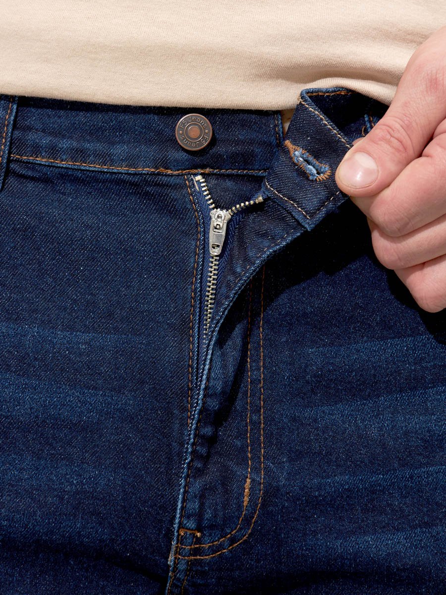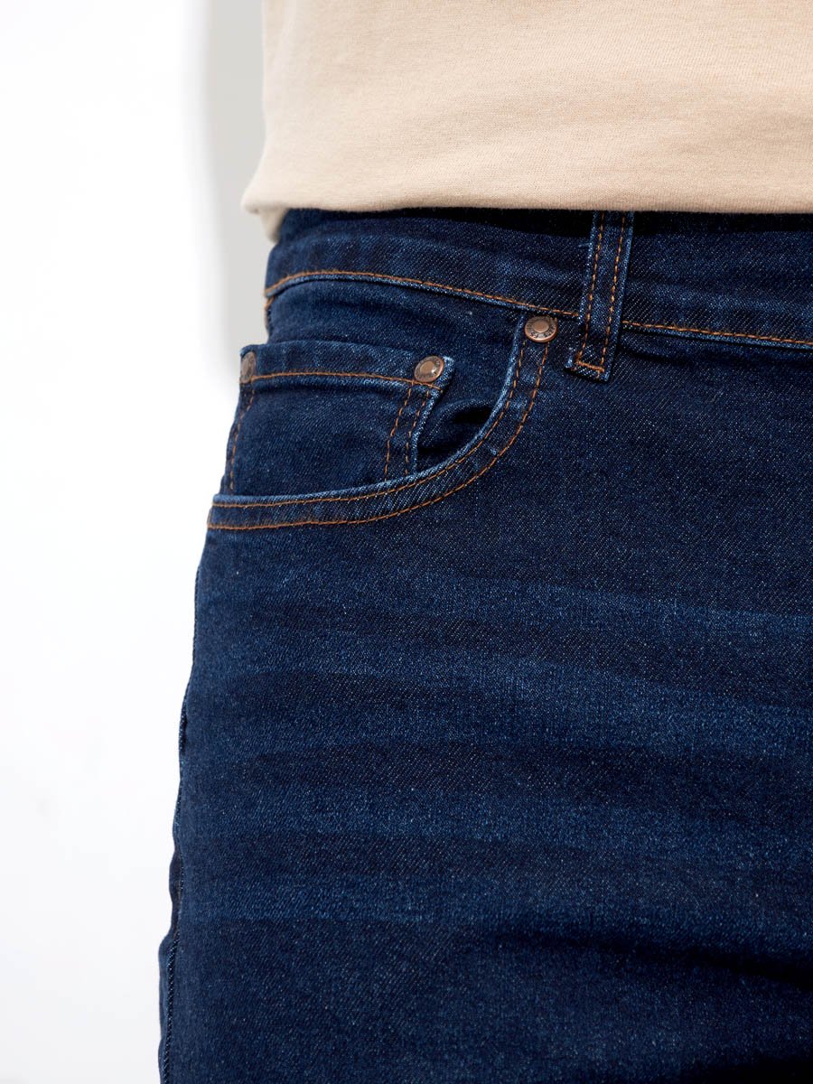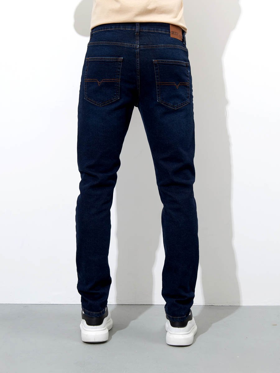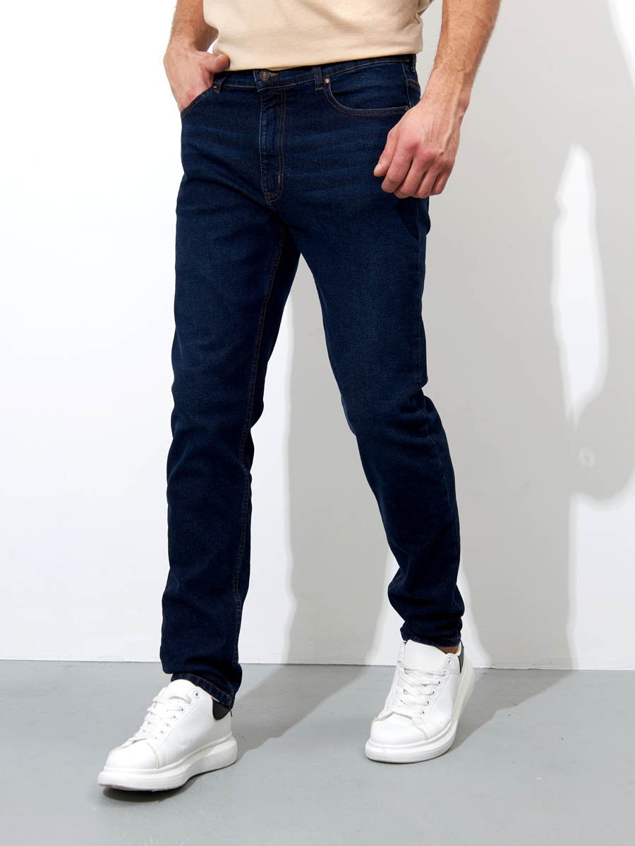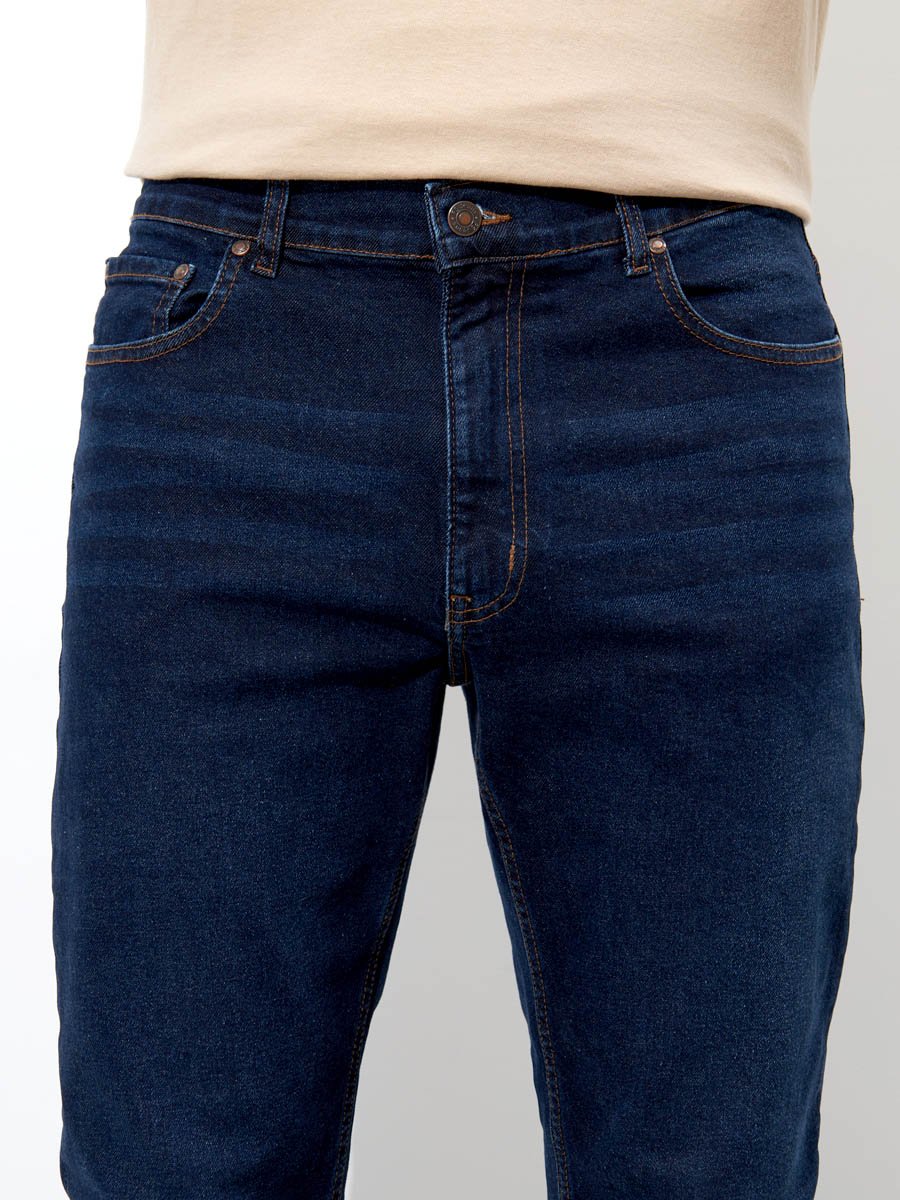 Мужские классические джинсы с пятью карманами. Посадка Slim Fit (облегающие по бедрам) предлагает зауженный крой, который подчеркивает силуэт и не стесняет движения. Средняя высота талии, застежка на молнии, зауженные к низу. Выполнены из слабоэластичной ткани denim comfort stretch с добавлением эластана, что обеспечивает свободу движений. Классическая темная стирка со слабовыраженными потертостями и "усами" спереди и сзади.