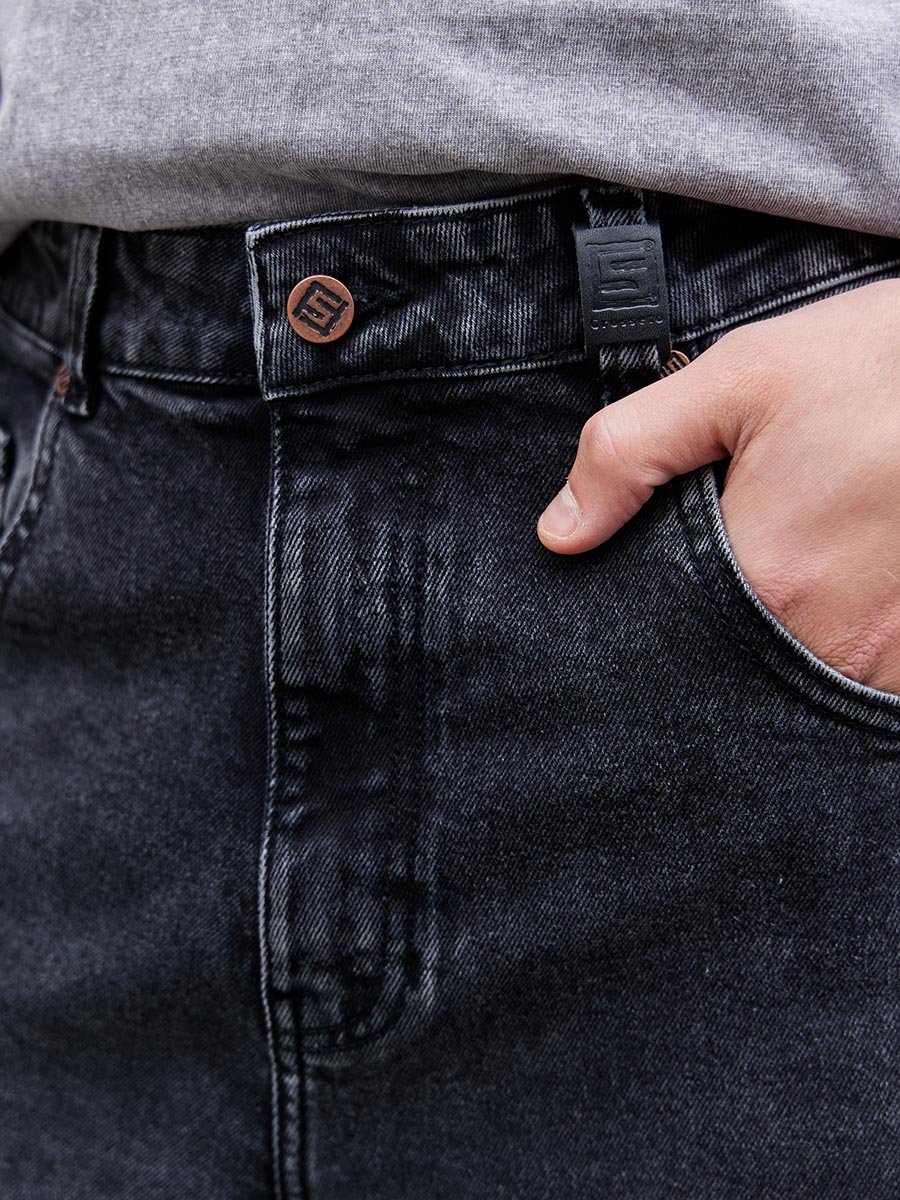 Самый модный силуэт сезона! Эти ультрамодные мешковатые джинсы - must-have для создания смелого городского образа. Удобные, стильные и невероятно популярные. Мешковатый крой (Baggy Fit) с высокой посадкой на талии и широкими штанинами по всей длине. Рекомендуется носить на бедрах. Застежка на молнии. Ткань с добавлением эластана (Comfort Stretch) тянется и обеспечивает дополнительную свободу движений. Две вытачки под коленом для создания дополнительного объема, большие задние карманы, прямой разутюженный боковой шов создают современный дизайн и добавляют образу расслабленную бунтарскую эстетику. Классическая темная стирка "Stone Wash", которая легко комбинируется с любой одеждой.