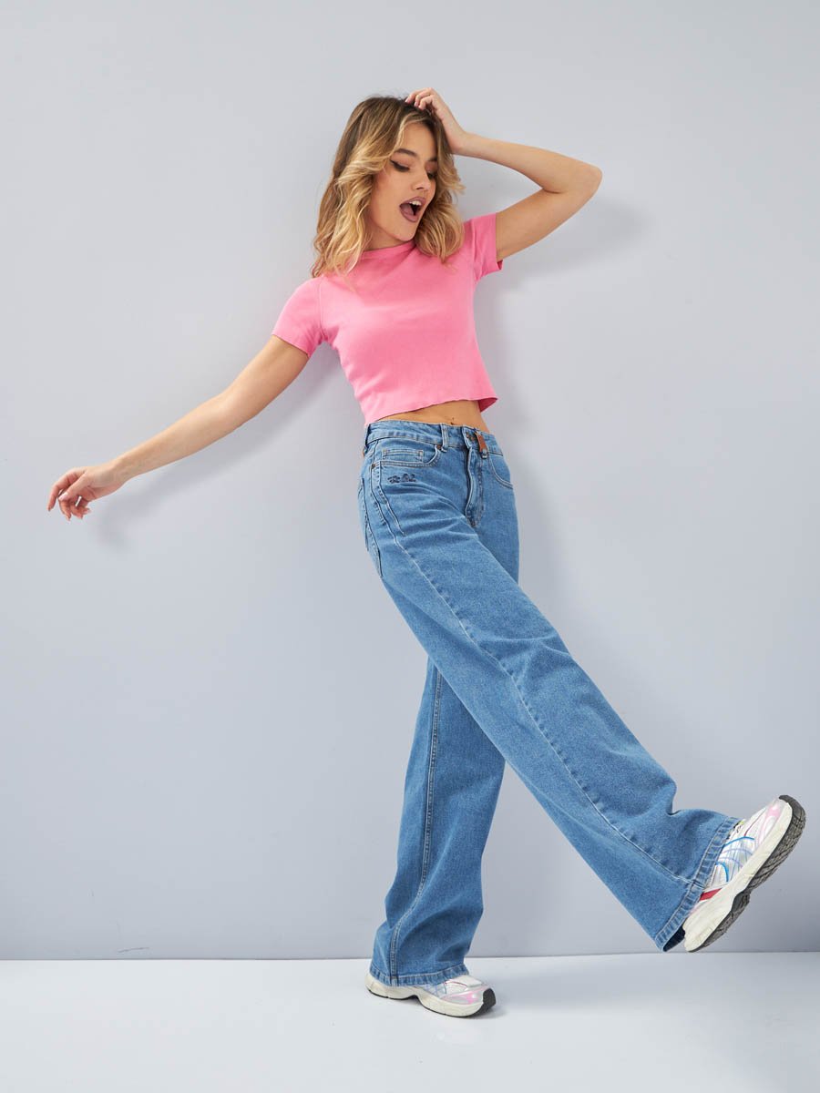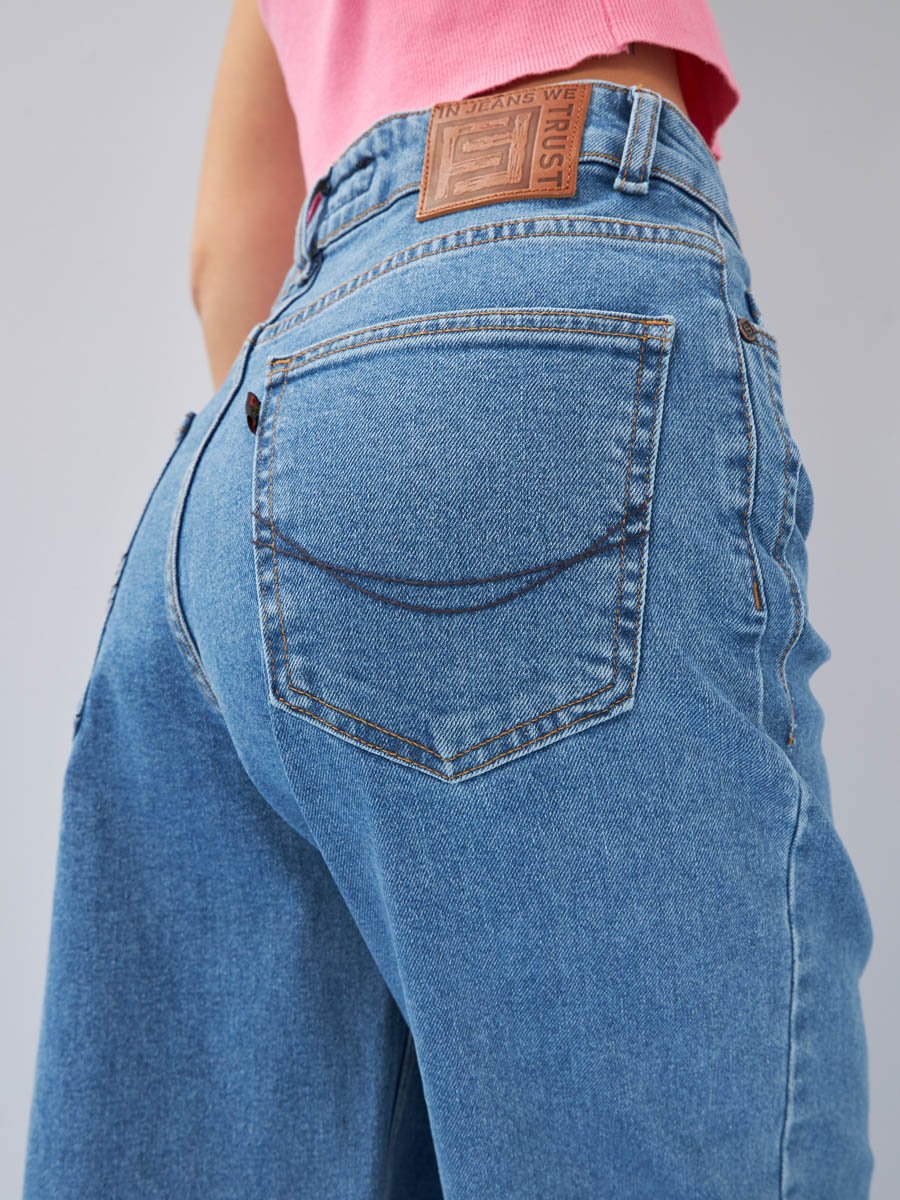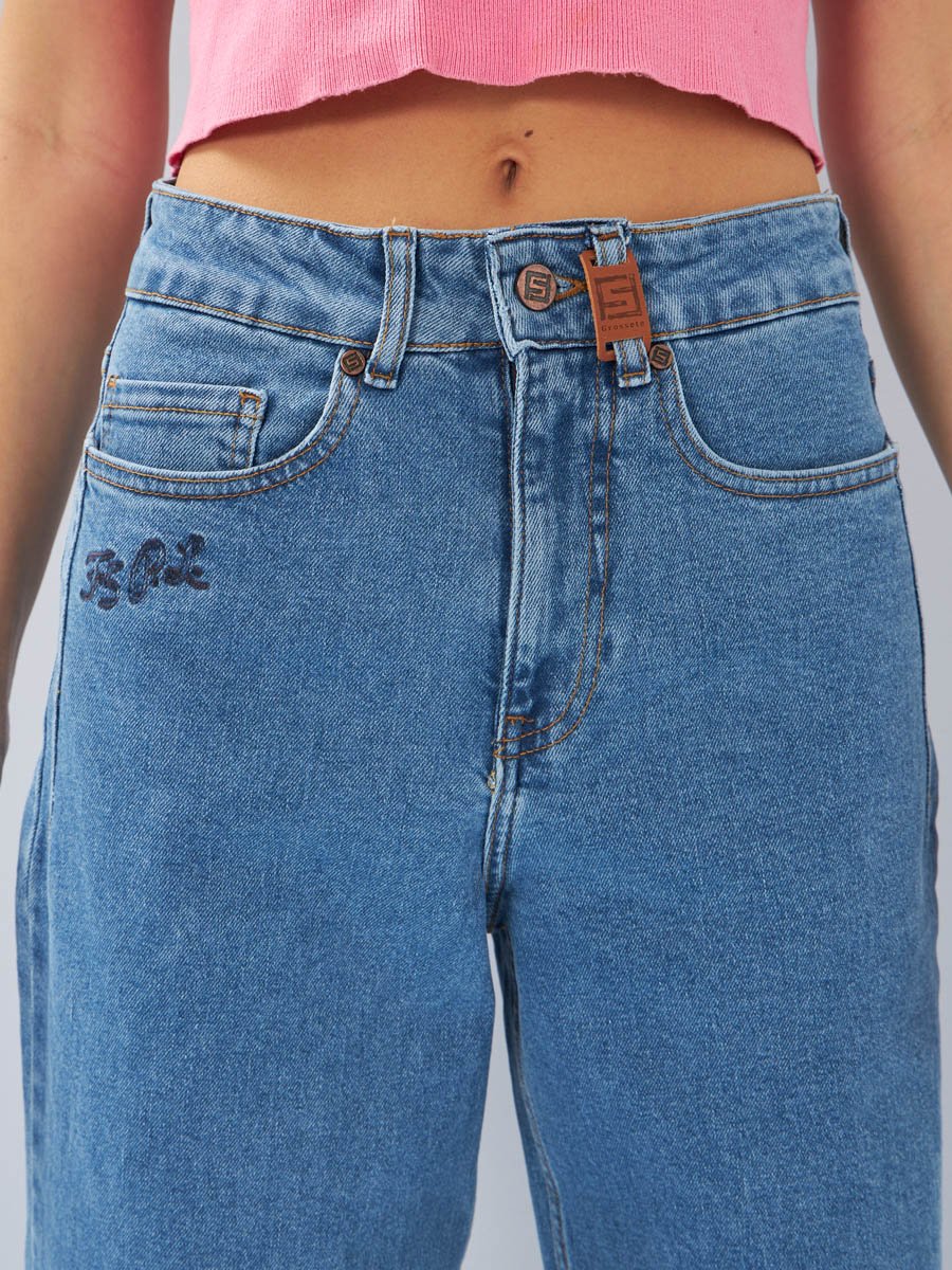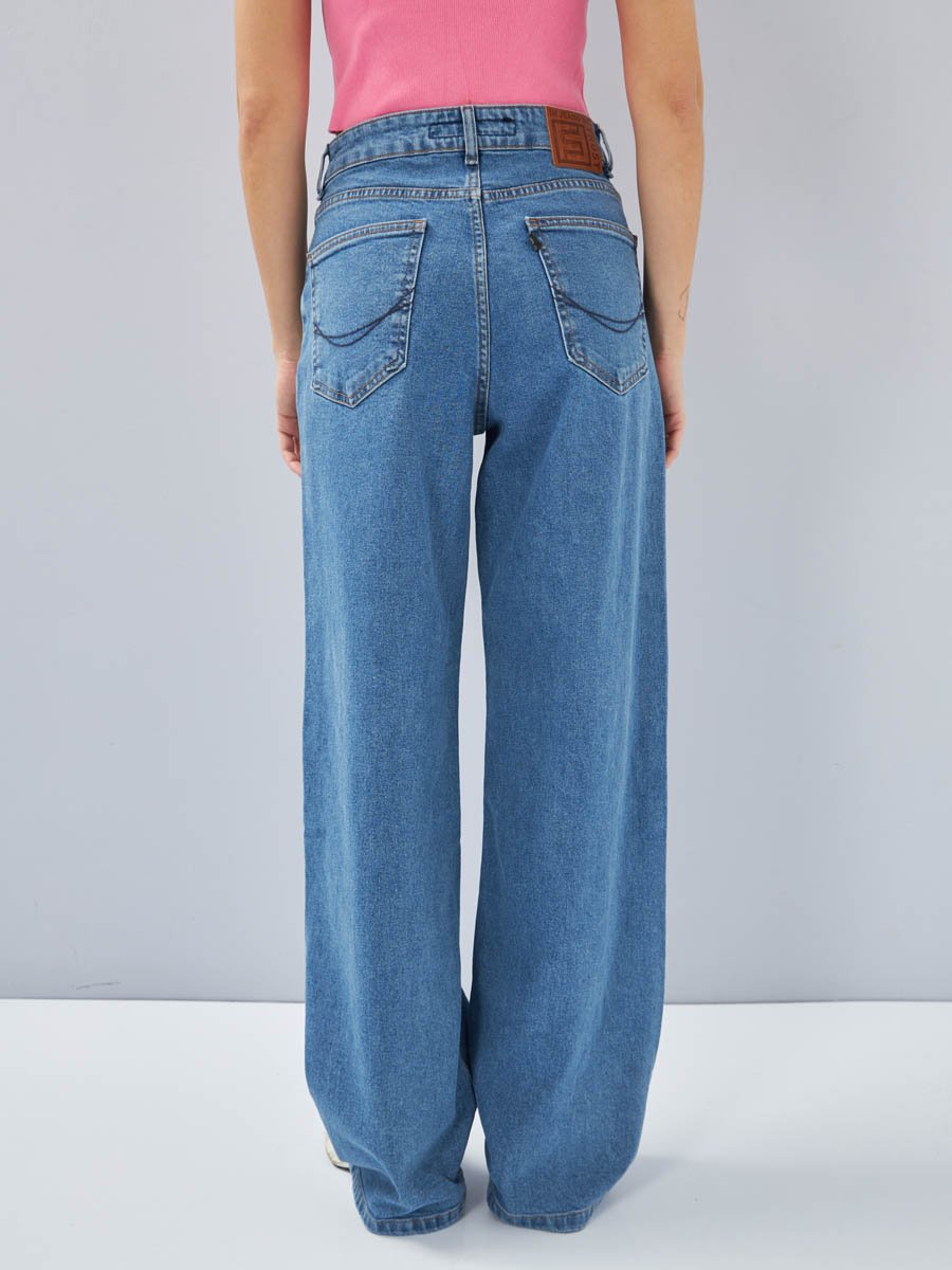 Женские модные джинсы с пятью карманами. Посадка Baggy fit , высокая талия спереди и сзади, широкие штанины по всей длине. Для лучшего облегания в области бедер под передними карманами сделана вытачка. Застежка на молнии. Выполнены из слабоэластичной ткани denim comfort stretch. Средня стирка "stone wash".