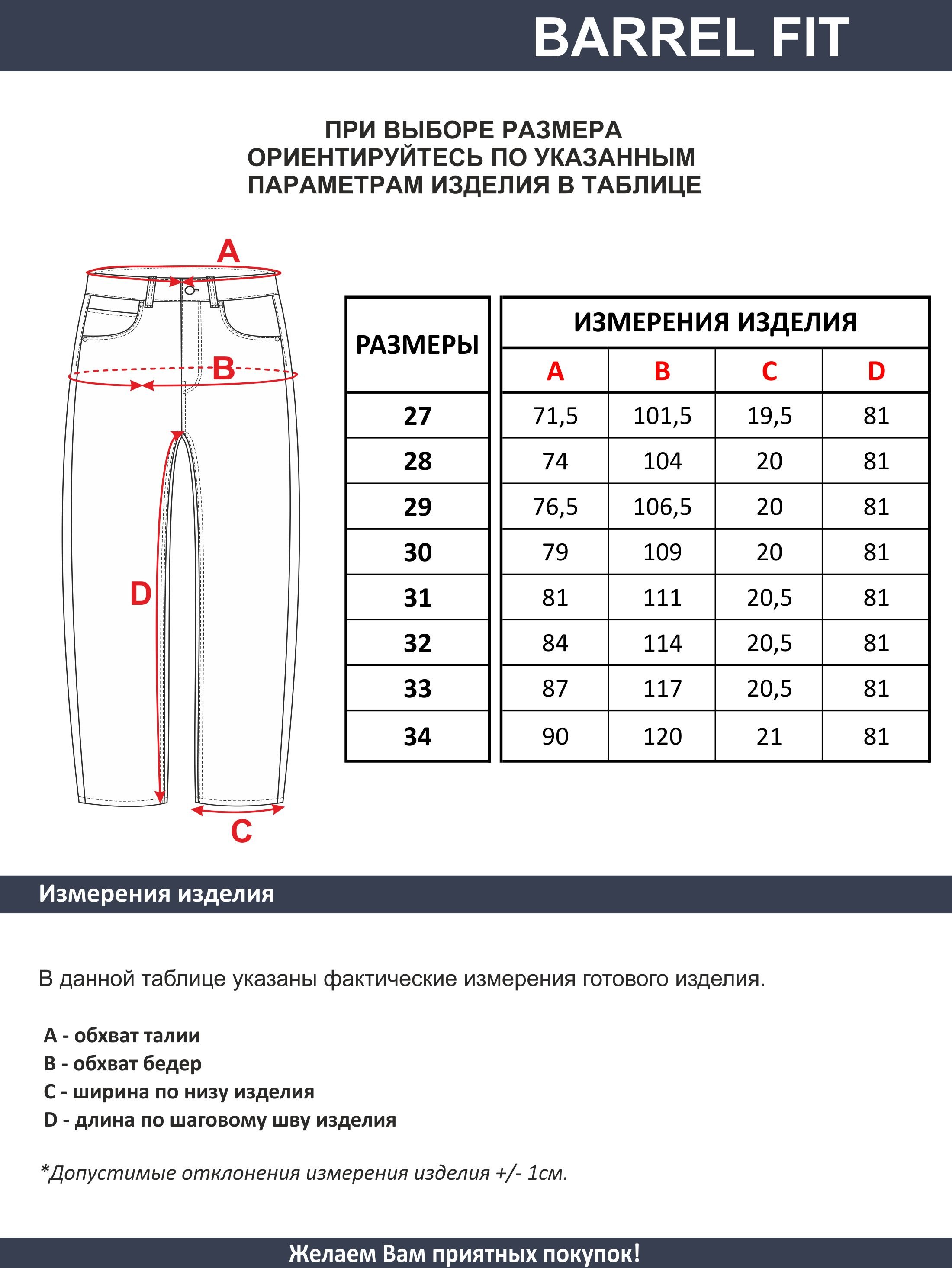 НОВИНКА! Джинсы Barrel (Бочка) - тренд сезона! Покоряйте модные вершины с абсолютно новым силуэтом! Джинсы Barrel - это идеальный сплав ретро-харизмы и современного комфорта. Главная отличительная черта - это особый крой бедер, который создает характерный изгиб наподобие бочки. Объемная верхняя часть плавно переходит в зауженный крой книзу, формируя силуэт песочных часов. Высокая посадка и вытачки сзади обеспечивают улучшенную посадку и комфортное положение джинсов на талии, а особая конструкция швов позволяет добиться правильного распределения объема по всей длине изделия. Кроме того высокая посадка, что удлиняет ноги и подчеркивает талию. Такой силуэт маскирует недостатки фигуры, а объемный крой в верхней части обеспечивает свободу движений. Изготовлены из традиционного денима в винтажном стиле с усами и потертостями.