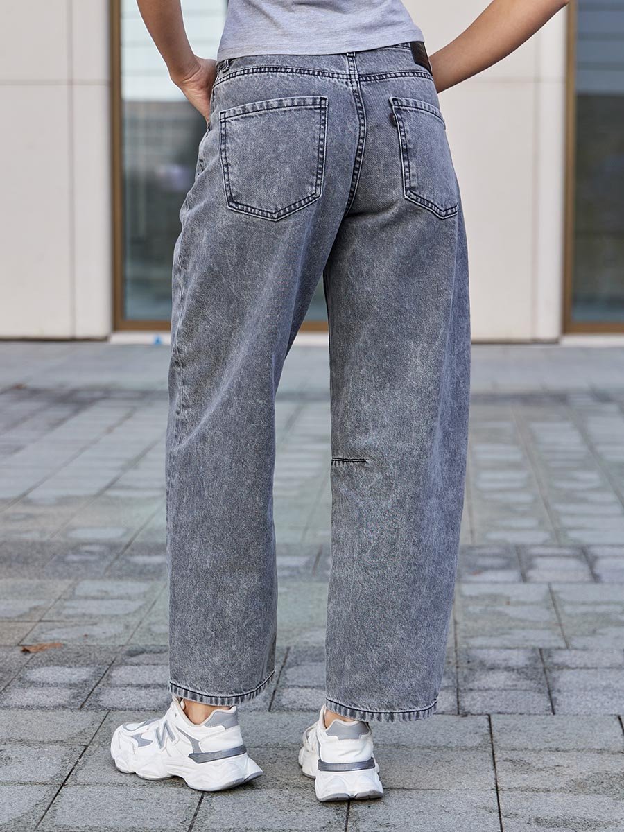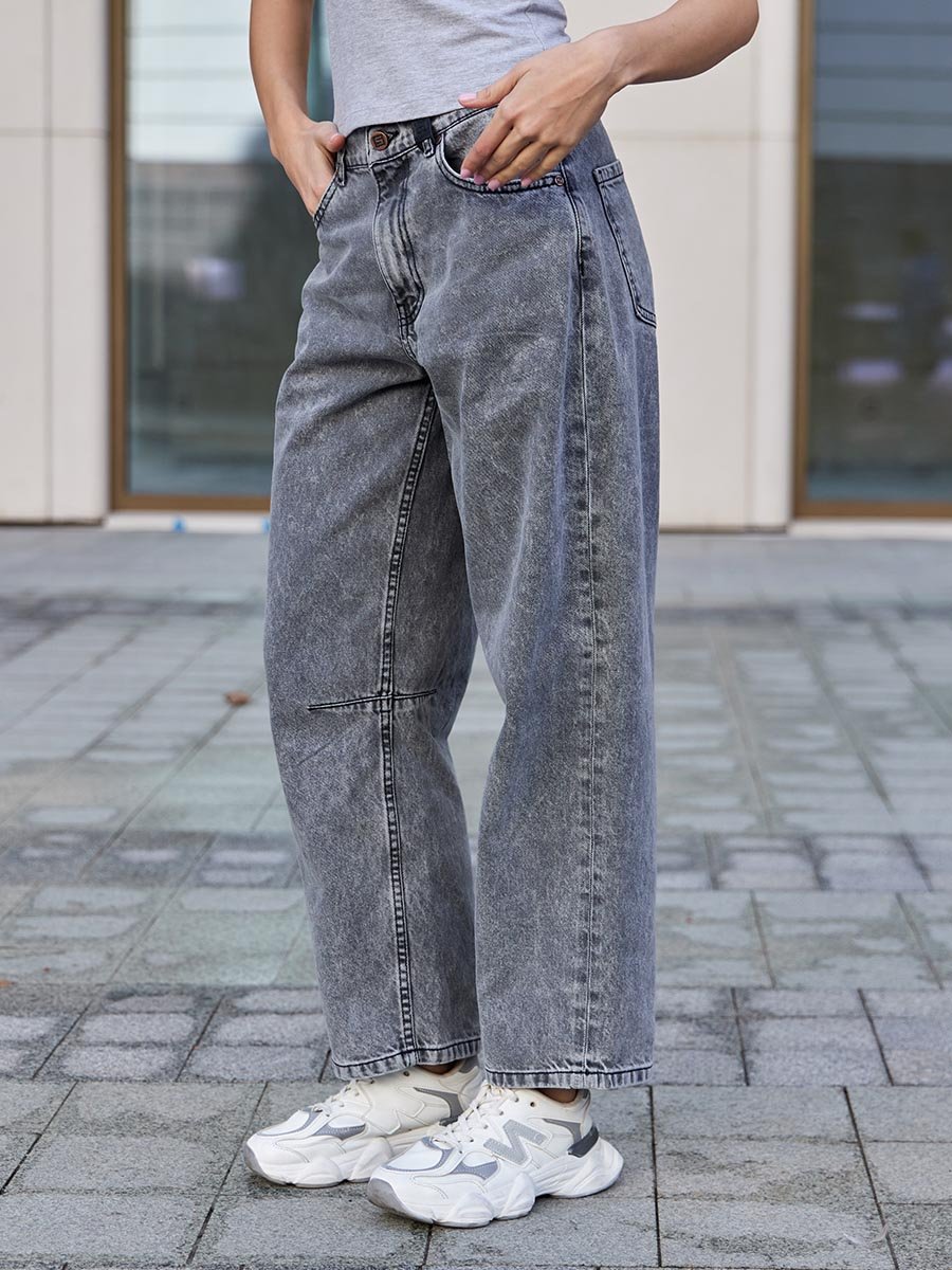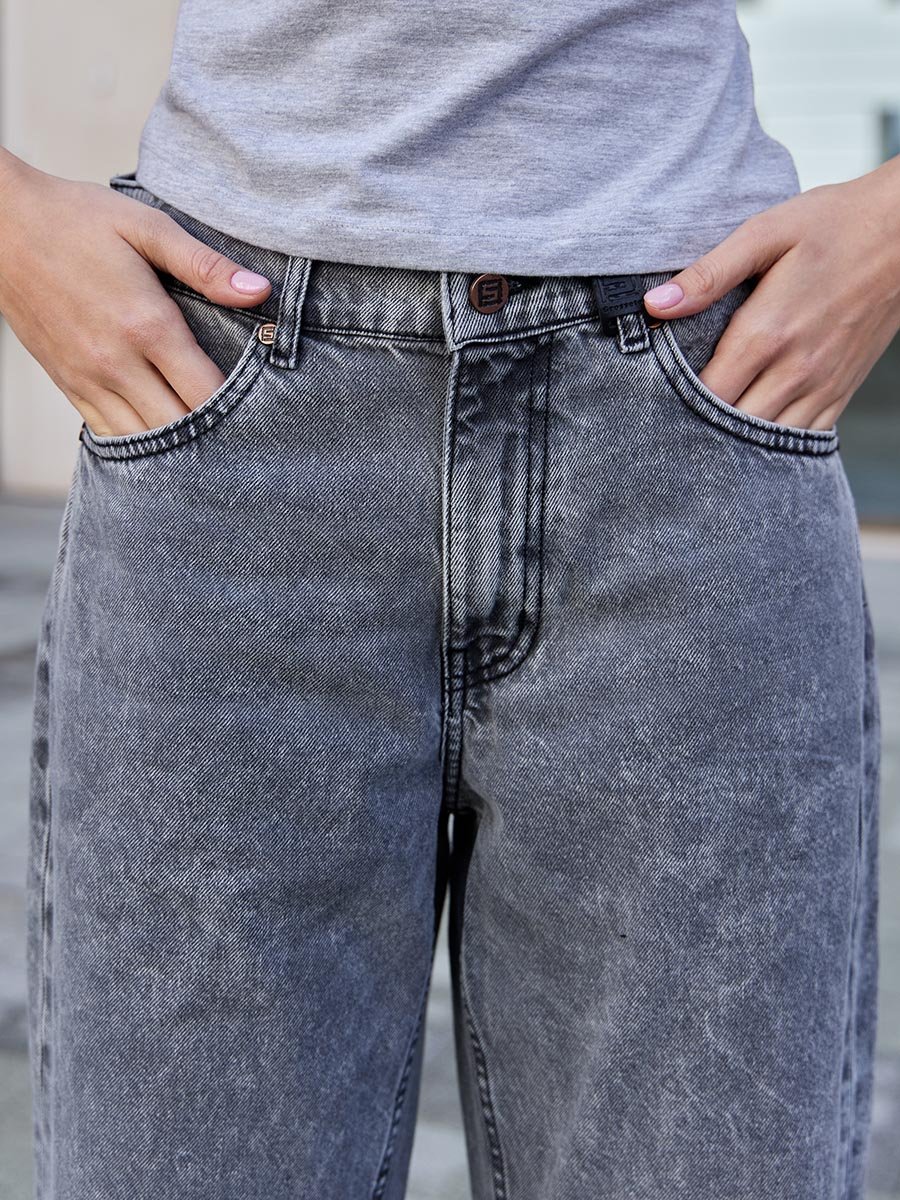 Джинсы Barrel (Бочка) - тренд сезона! Укороченные джинсы модного кроя Barrel с вытачками на коленях создают идеальный объемный силуэт "бочонка" - широкие в бедрах и плавно сужающиеся к низу. Это создает современный и очень стильный геометрический образ. Вытачки в области колена по внутреннему шву не просто являются дизайнерской изюминкой, но и дополнительно подчеркивают требуемый силуэт бочонка и обеспечивают идеальную посадку по ноге, сохраняя форму джинсов при движении. Укороченная длина "анкл" (ankle-length) визуально делает образ легче и современнее и идеально подходит для создания настроения легкой небрежности. Изготовлены из черного денима. Специальная стирка towel wash позволяет получить особый винтажный вид ткани с легким мраморным эффектом. Эта модель - идеальная пара для современных стильных и смелых образов.