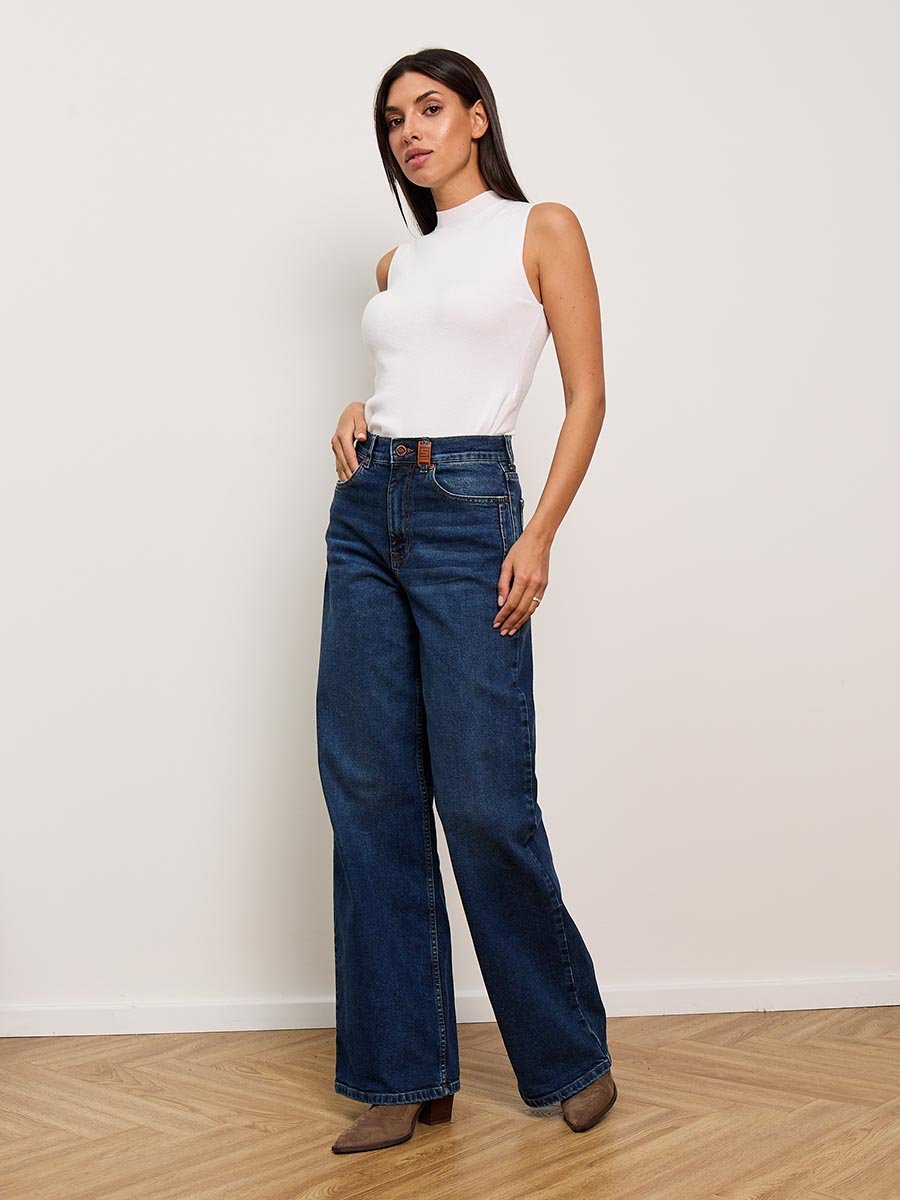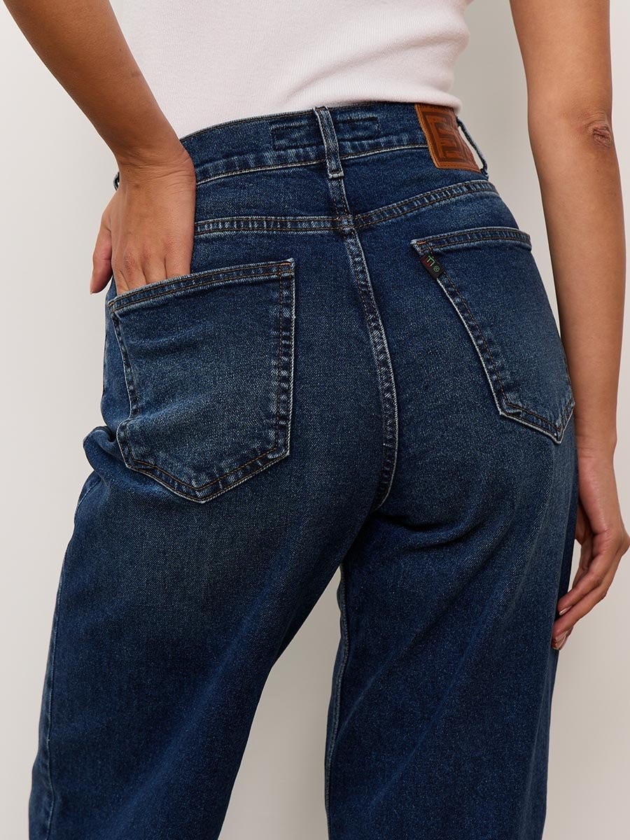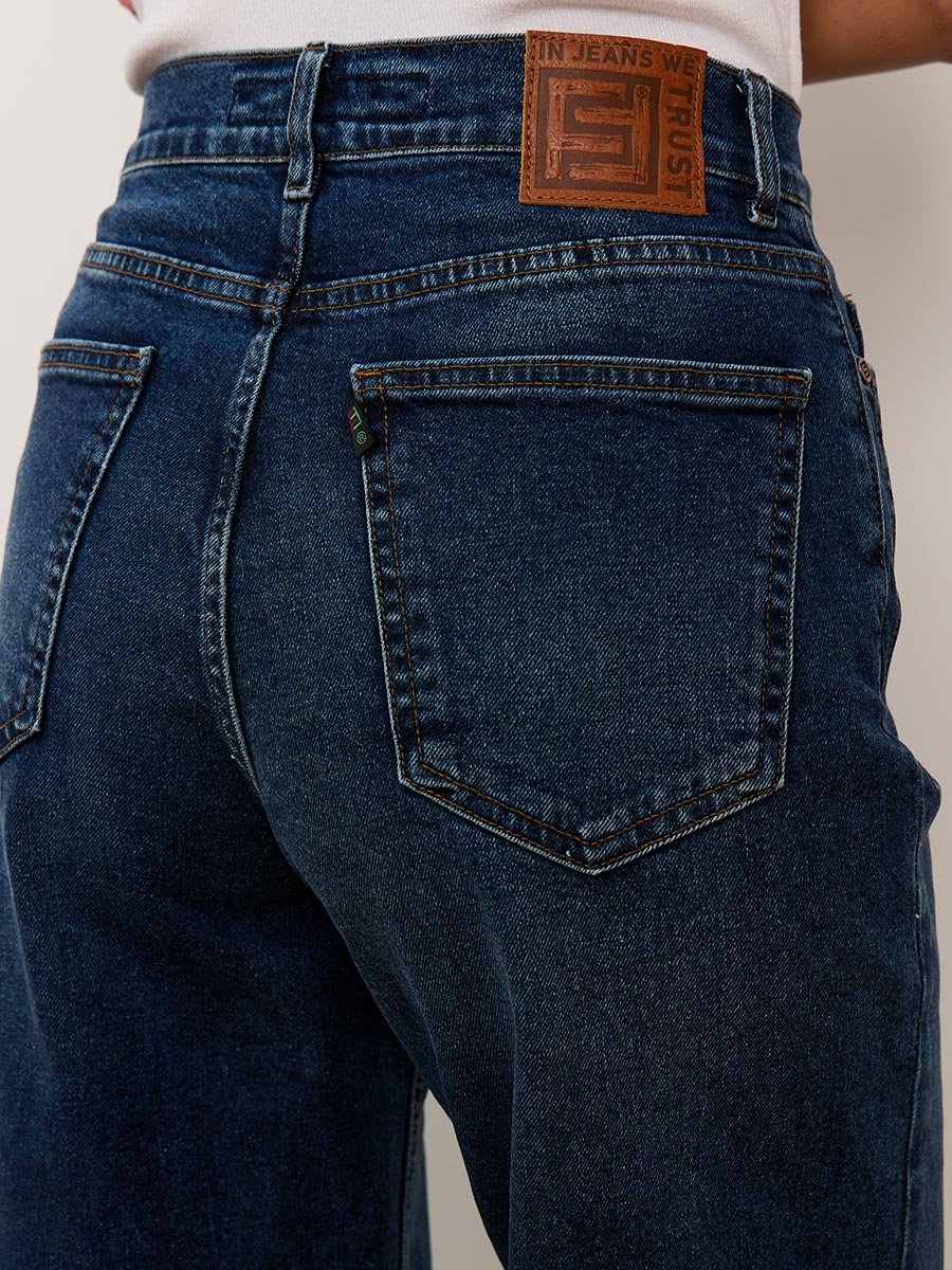 Женские модные джинсы с пятью карманами. Посадка Baggy fit , высокая талия спереди и сзади, широкие штанины по всей длине. Для лучшего облегания в области бедер под передними карманами сделана вытачка. Застежка на молнии. Выполнены из слабоэластичной ткани denim comfort stretch. Средня стирка "stone wash".