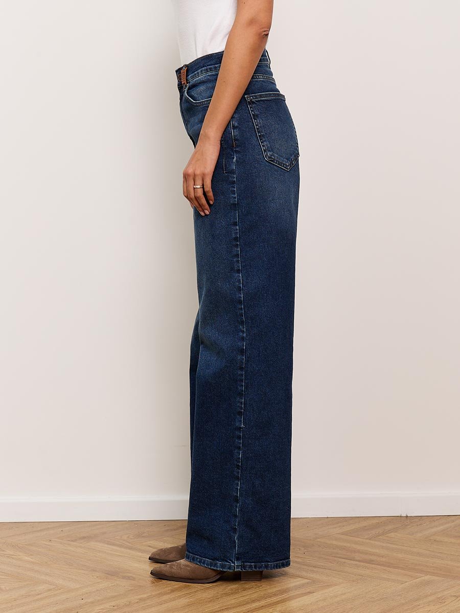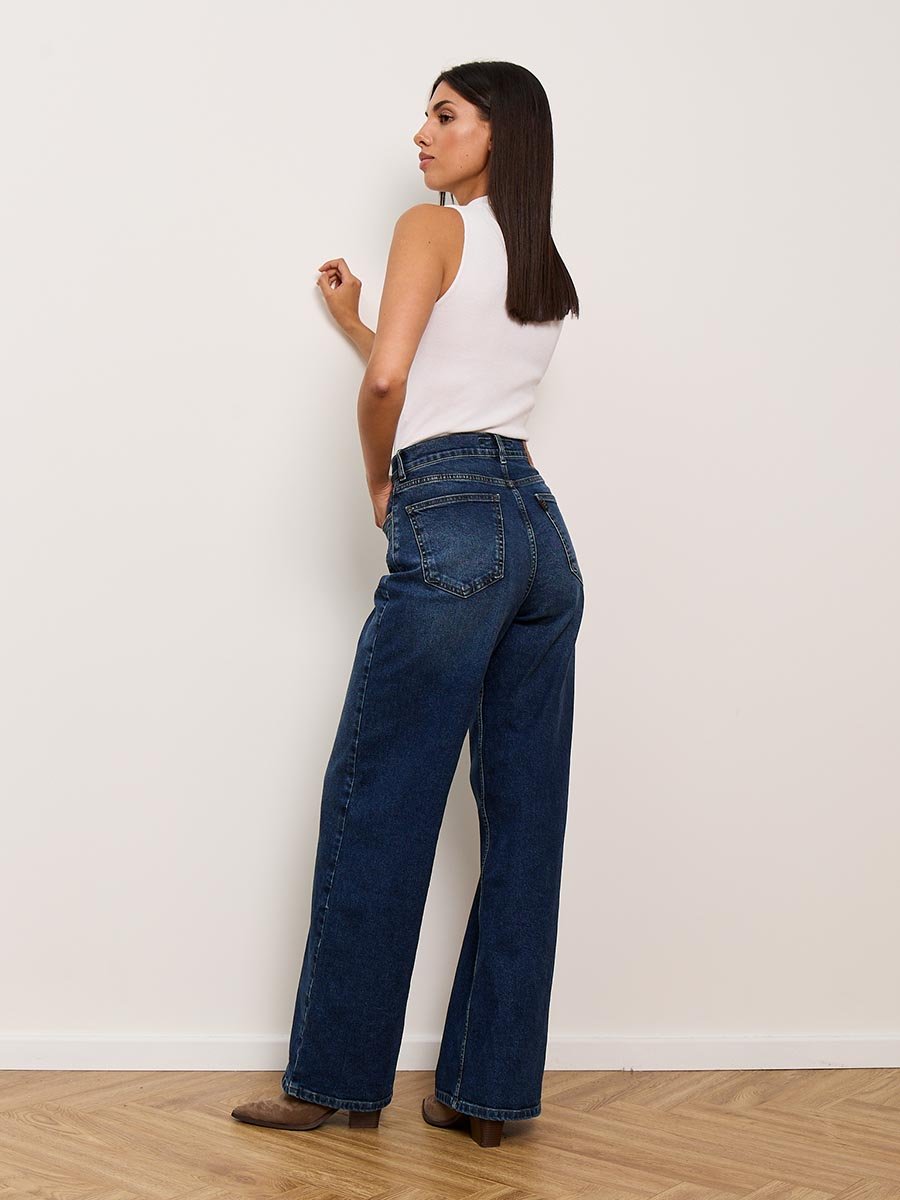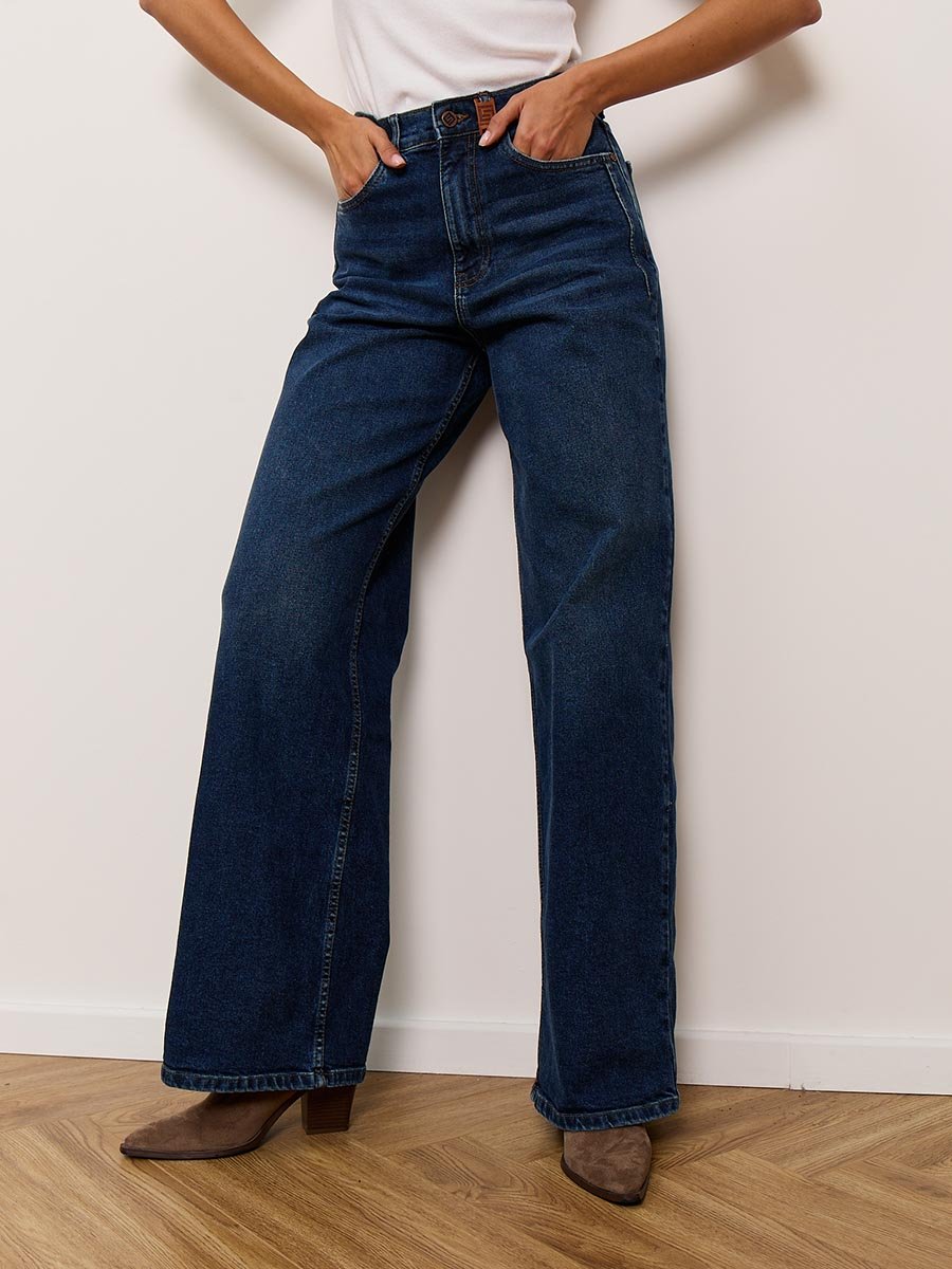 Женские модные джинсы с пятью карманами. Посадка Baggy fit , высокая талия спереди и сзади, широкие штанины по всей длине. Для лучшего облегания в области бедер под передними карманами сделана вытачка. Застежка на молнии. Выполнены из слабоэластичной ткани denim comfort stretch. Средня стирка "stone wash".