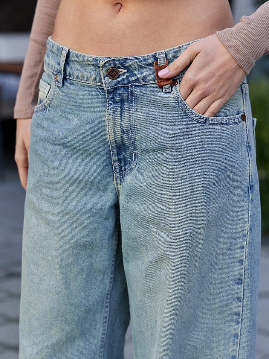 Почувствуйте дух бунтарства и свободы с этими ультрамодными джинсами! Они созданы для тех, кто не боится выделяться и быть в самом пике сегодняшних трендов, которые диктует улица и подиумы. Расслабленный крой Baggy fit с низкой посадкой и застежкой на молнии, широкими штанинами - это максимальный комфорт и уверенность в каждом движении. Благодаря уникальной расцветке от тинтованного эффекта "GET DIRTY" т.е. эффекта запачканных джинсов вы получаете в вашем образе хулиганскую нотку и особую индивидуальность. Изготовлены из традиционного денима. Эта модель - это не просто штаны, а настоящий арт-объект для вашего образа.
