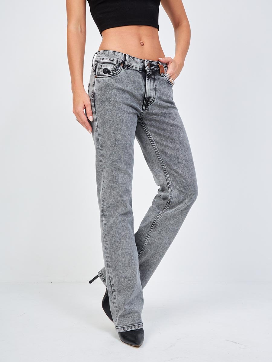 Женские джинсы с пятью карманами. Посадка Regular fit (полуоблегающие по бедру), средняя высота талии спереди и умеренно-высокая сзади, прямые по длине. Для улучшения посадки сделан подкройной пояс из 2-х частей. На часовом кармане вышивка. Застежка на молнии. Выполнены из слабоэластичной ткани denim comfort stretch, цвет ткани Black/Black (лицевая и изнаночная стороны ткани черные). Женские джинсы с пятью карманами. Посадка Regular fit (полуоблегающие по бедру), средняя высота талии спереди и умеренно-высокая сзади, прямые по длине. Для улучшения посадки сделан подкройной пояс из 2-х частей. На часовом кармане вышивка. Застежка на молнии. Выполнены из слабоэластичной ткани denim comfort stretch, цвет ткани Black/Black (лицевая и изнаночная стороны ткани черные). Специальная стирка towel wash позволяет получить особый винтажный вид ткани с легким мраморным эффектом.