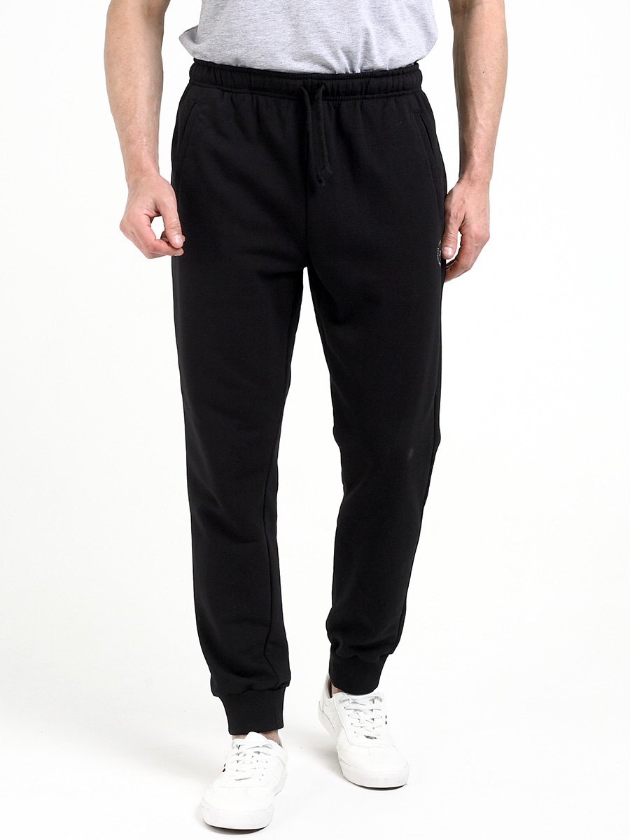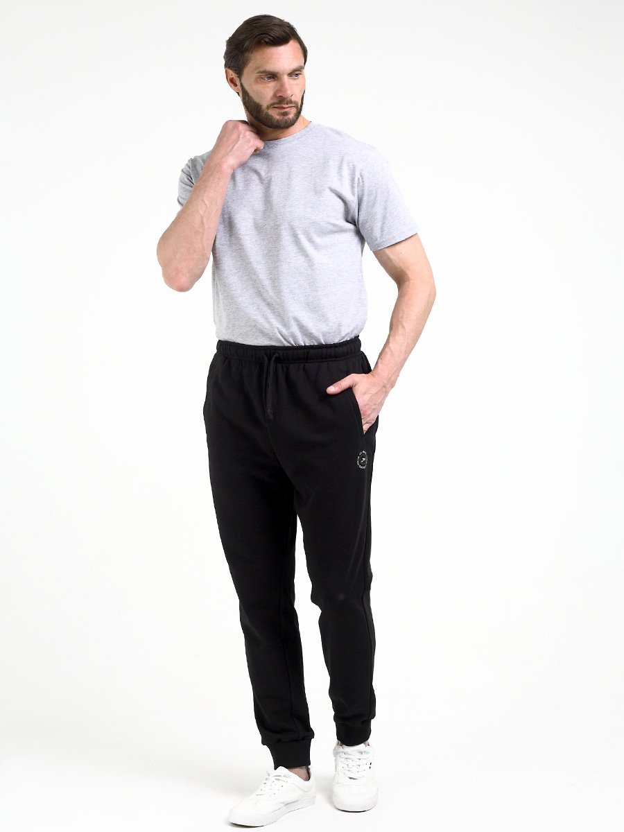 Трикотажные мужские брюки из хлопка с добавлением полиэстера, мягкие и приятные на ощупь, не сковывают движения, обеспечивая максимальный комфорт. На передних половинках вместительные карманы. По низу брюки собраны мягкой трикотажной резинкой. Пояс на резинке. Дополнительно в поясе имеется шнур.