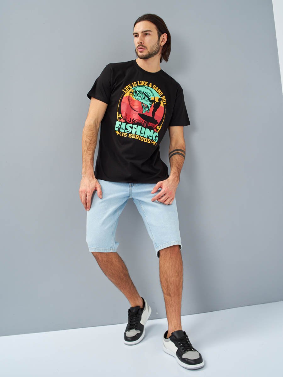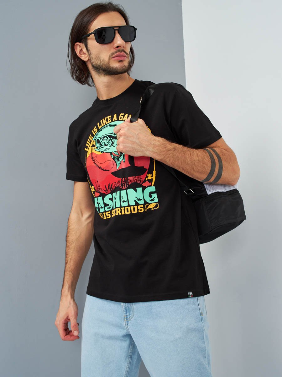 Мужская футболка F5, Regular fit (полуприлегающий силуэт), круглый вырез горловины, короткий рукав. Выполнена из классического трикотажного полотна.