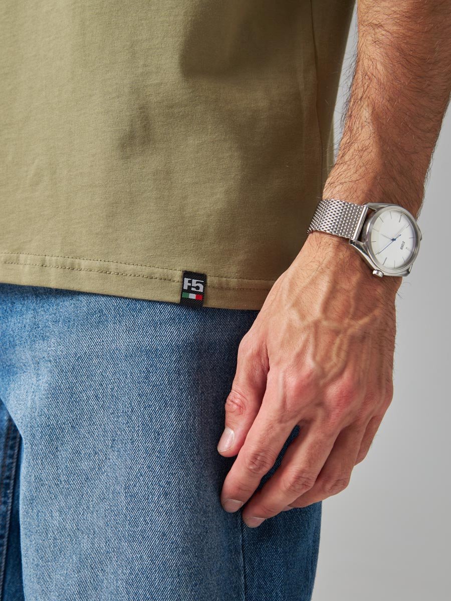 Мужская футболка F5, Regular fit (полуприлегающий силуэт), круглый вырез горловины, короткий рукав. Выполнена из классического трикотажного полотна.