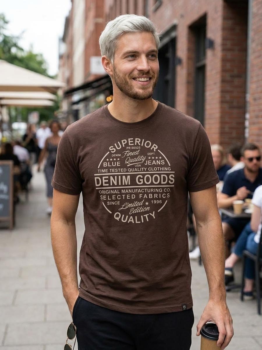 Мужская футболка F5, Regular fit (полуприлегающий силуэт), круглый вырез горловины, короткий рукав. Выполнена из классического трикотажного полотна.