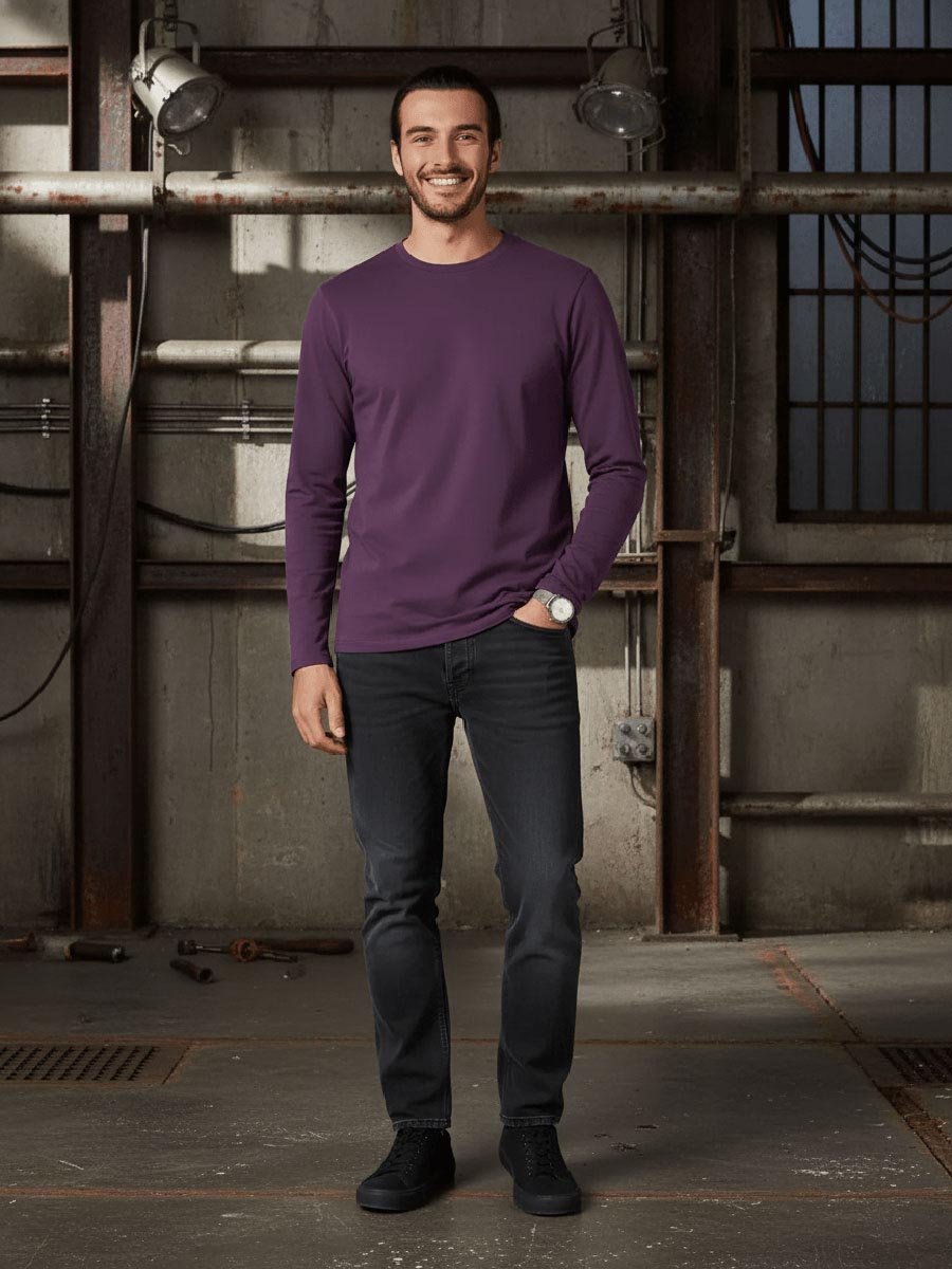 Мужская футболка F5, Regular fit (полуприлегающий силуэт), круглый вырез горловины, длинный рукав. Выполнена из классического трикотажного полотна.