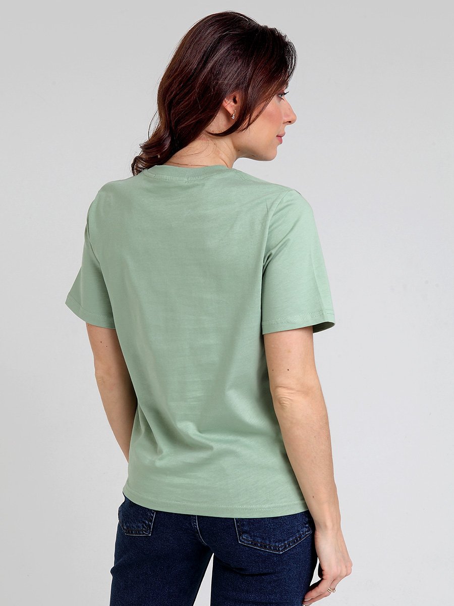 Женская футболка F5, Comfort fit (свободный силуэт), круглый вырез горловины, короткий рукав. Выполнена из классического трикотажного полотна.