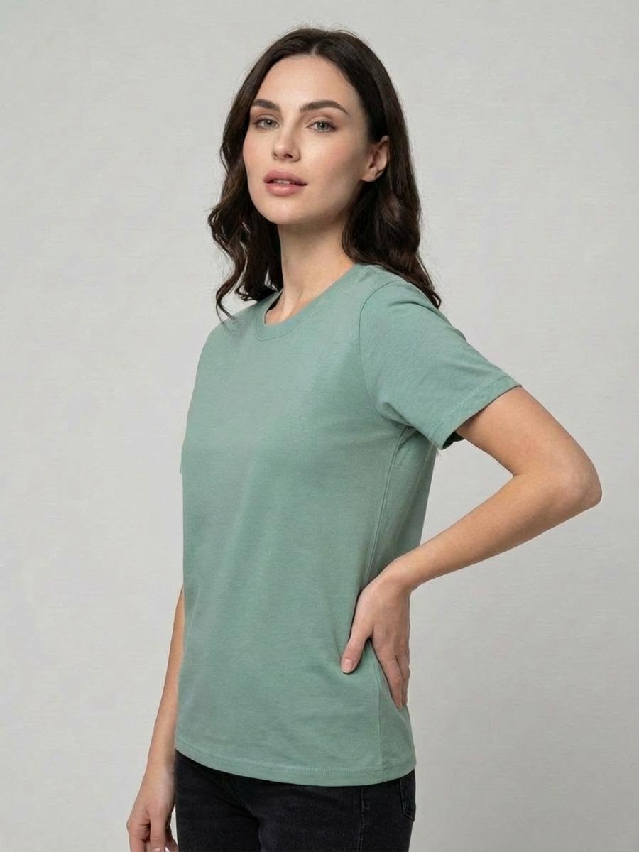 Женская футболка F5, Comfort fit (свободный силуэт), круглый вырез горловины, короткий рукав. Выполнена из классического трикотажного полотна.